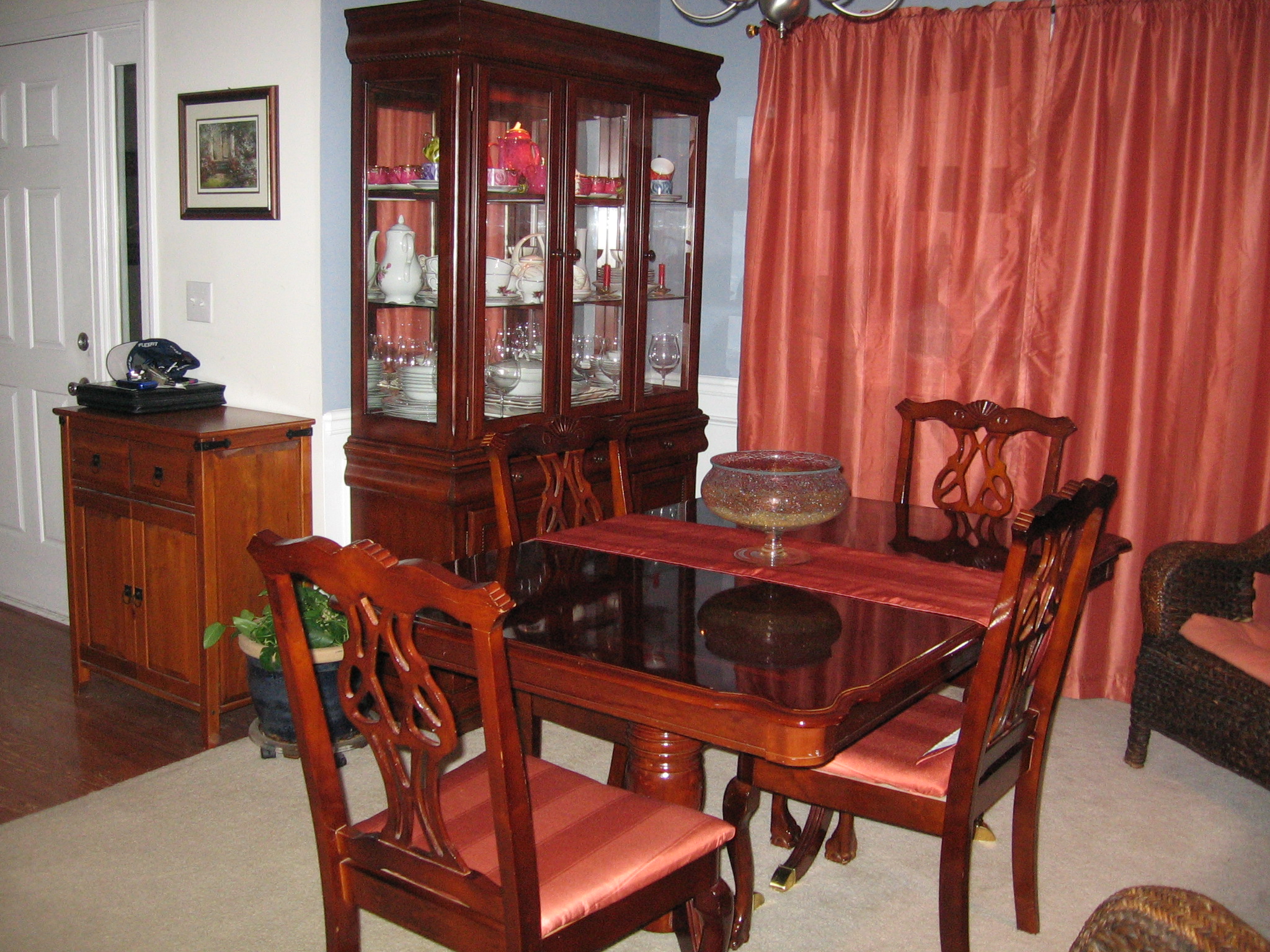 The house we live in was build for the family that eats at McDonalds or other fast food places 3 times a day. We don’t have a big on style kitchen or real formal dining room, where we could put a dining set that would fit all my china.